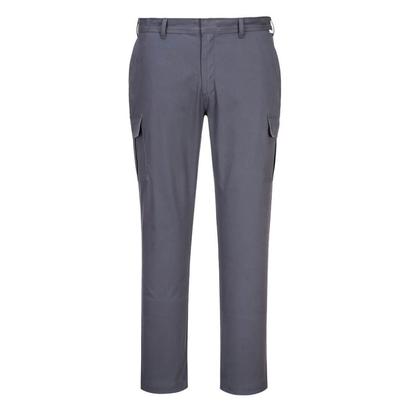 This slim fit stretch trouser has all the features of a cargo style with the advantage of dynamic cotton stretch twill fabric. This stretch fabric gives the ultimate in comfort and freedom of movement. Features include multiple utility pockets and a concealed hook and bar waist fastening. With twin stitching throughout and bar-tacking at all stress points, this trouser is highly durable.