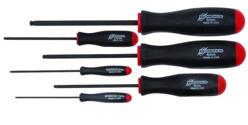 BONDHUS BSX6 Ball Driver Hex Screwdriver 6pcs Metric Set 1.5mm-5mm, 10686 - Ball End Tip Screwdriver 6 Piece Set w/ProGuard™ Finish. Sizes: 1.5mm, 2mm, 2.5mm, 3mm, 4mm & 5mm