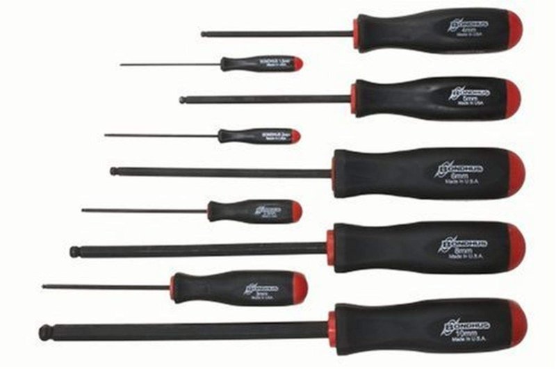 BONDHUS PBSX9M Prohold BallEnd Hex Screwdriver 9pcs Metric Set 1.5mm-10mm, 74699 - ProHold® Ball End Tip Screwdriver Set of 9 Pieces w/ProGuard™ Finish. Sizes: 1.5mm, 2mm, 2.5mm, 3mm, 4mm, 5mm, 6mm, 8mm & 10mm