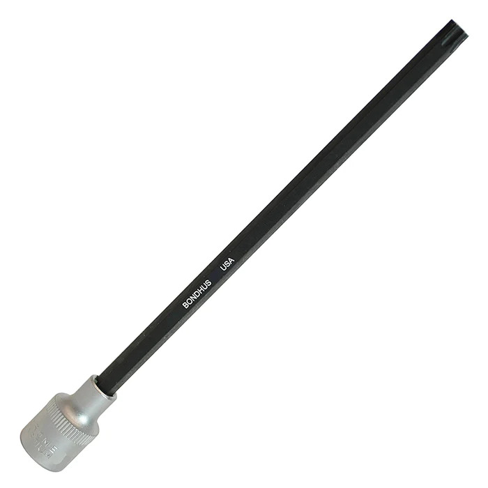 BONDHUS T27 ProHold Torx InHex Bit + 1/4" Socket, TX27, 44627 - ProHold® Socket Torx Bit w/Socket Size: T27 Length: 6" Socket: 1/4" DR Stock Size: 5mm With ProHold® Button Technology. Protanium® High Torque Steel and ProGua...
