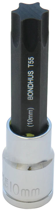BONDHUS T45 ProHold Torx InHex Bit + 3/8" " Socket, TX45, 44245 - ProHold® Socket Torx Bit w/Socket Size: T45 Length: 2" Socket: 3/8" DR Stock Size: 7mm With ProHold® Button Technology. Protanium® High Torque Steel and...