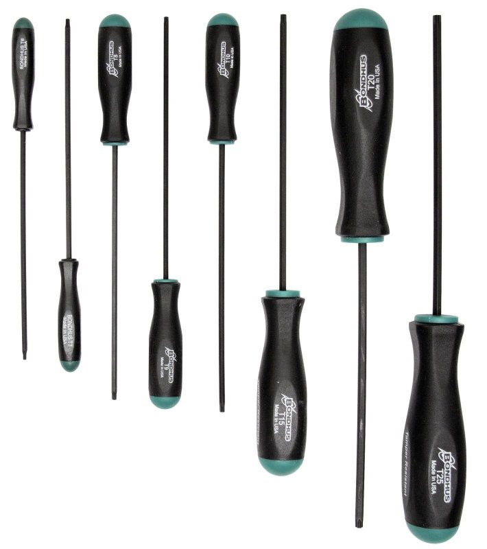BONDHUS TSX8S Torx Screwdriver 8pcs Set TX6-TX25, 34532 - Torx® Tip Screwdriver Set of 8 pcs w/ProGuard™ Finish. Set Includes sizes: T6, T7, T8, T9, T10, T15, T20 & T25