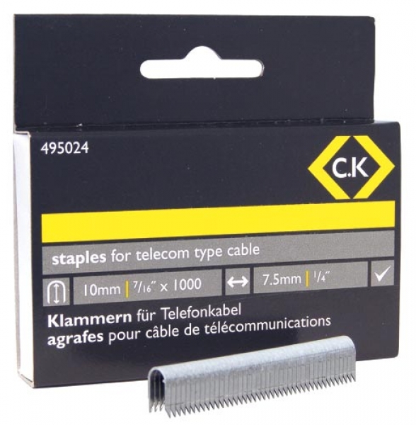 High quality telecom cable staples, galvanised for corrosion protection. White coated tops for discreet fixing - to suit C.K T6228 Telecom cable tacker